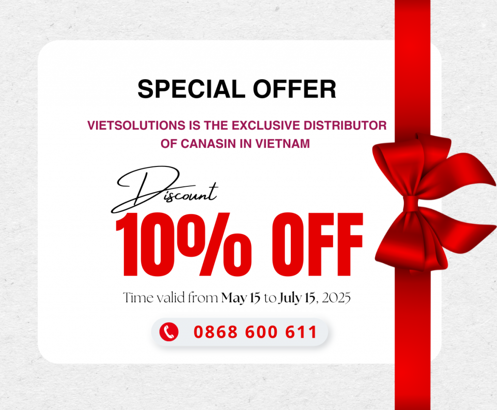Chào đón mùa du lịch hè cùng ưu đãi 10% tất cả sản phẩm CANASIN từ VIETSOLUTIONS – nhà phân phối độc quyền tại Việt Nam. Thời gian áp dụng: 15/05–15/07/2025. Liên hệ ngay 0868 600 611 để được hỗ trợ!